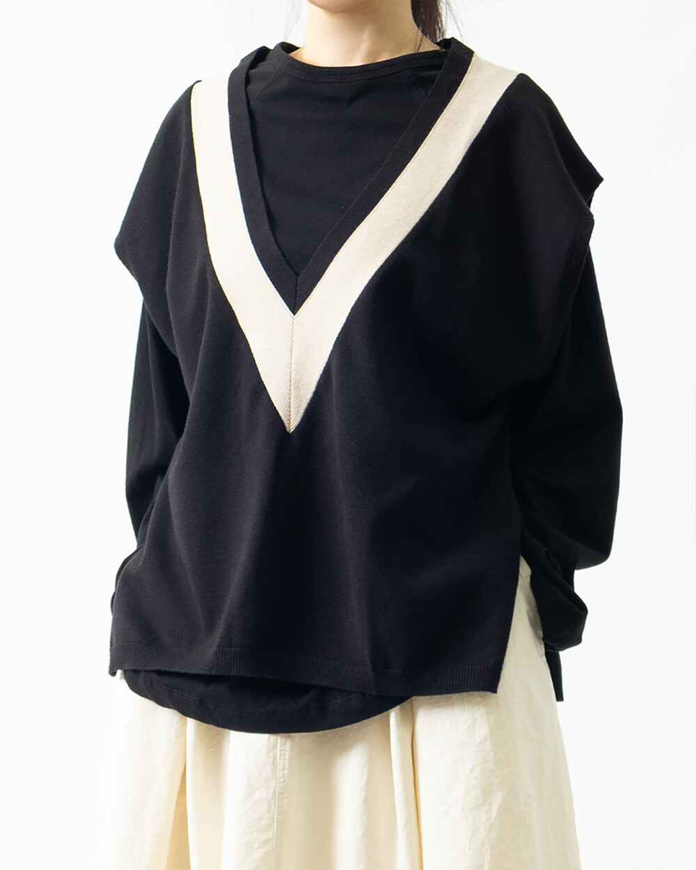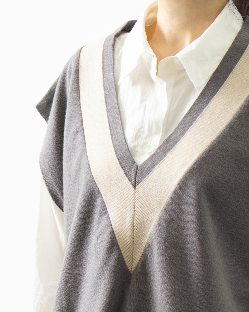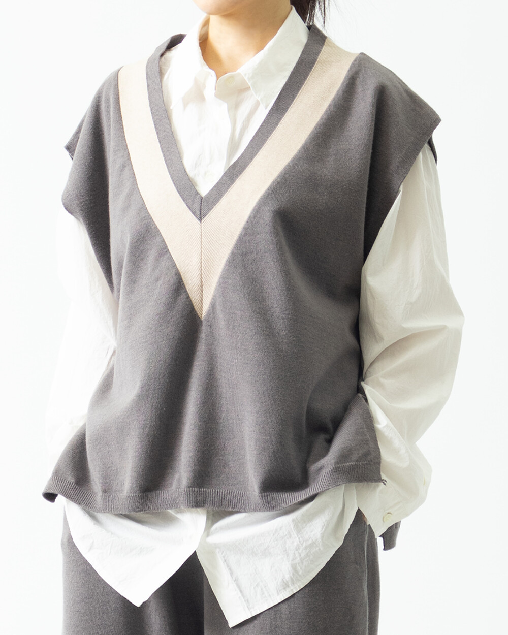 배색 니트 베스트